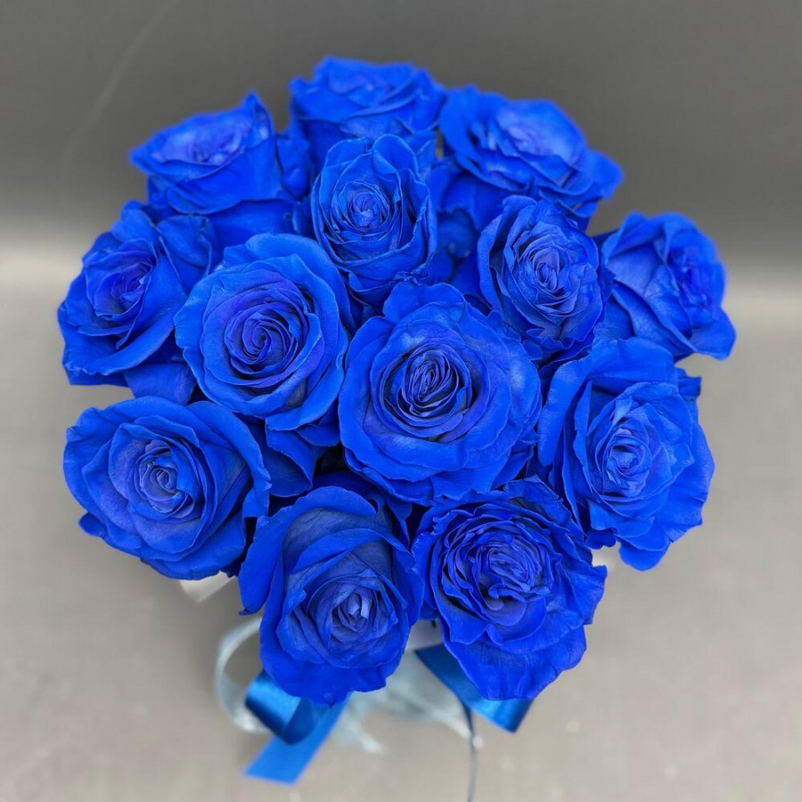 13 синих роз в шляпной коробке в Белебее
