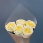 На фото 5 кремовых роз. В составе: роза 5 шт, дизайнерская упаковка 1 шт, атласная лента 1 шт, . Все цветы свежие и ароматные, букет красиво оформлен и отлично подходит для подарка. Доступна доставка цветов или самовывоз.