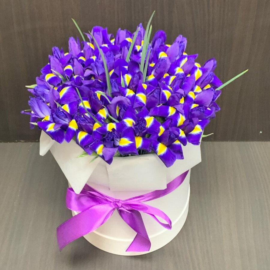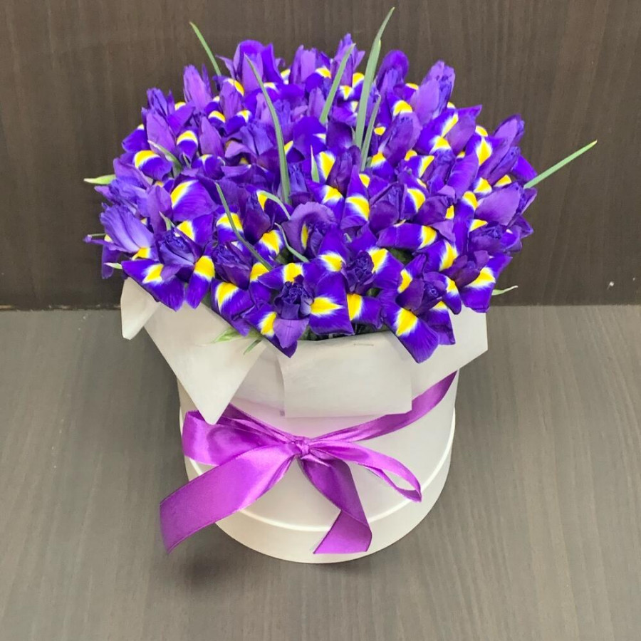 51 фиолетовый ирис в шляпной коробке в Белебее