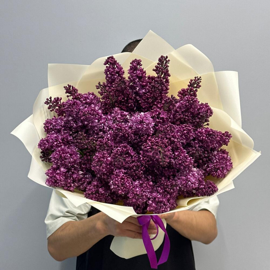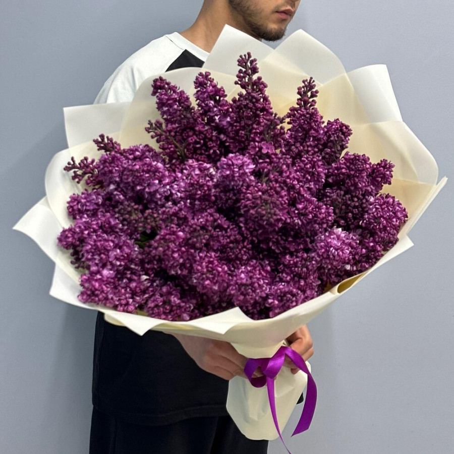 На фото большой букет сирени. В составе: сирень 11 шт, дизайнерская упаковка 3 шт, атласная лента 1 шт, . Все цветы свежие и ароматные, букет красиво оформлен и отлично подходит для подарка. Доступна доставка цветов или самовывоз.