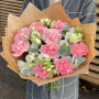 Букет из белой эустомы и розовых гвоздик в Белебее