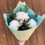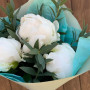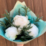 На фото букет из 3 белых пионов. В составе: пион 3 шт, писташ 4 шт, крафт-бумага 1 шт, атласная лента 1 шт, . Все цветы свежие и ароматные, букет красиво оформлен и отлично подходит для подарка. Доступна доставка цветов или самовывоз.