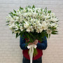 На фото букет из 55 белых альстромерий. В составе: альстромерия 55 шт, атласная лента 1 шт, . Все цветы свежие и ароматные, букет красиво оформлен и отлично подходит для подарка. Доступна доставка цветов или самовывоз.