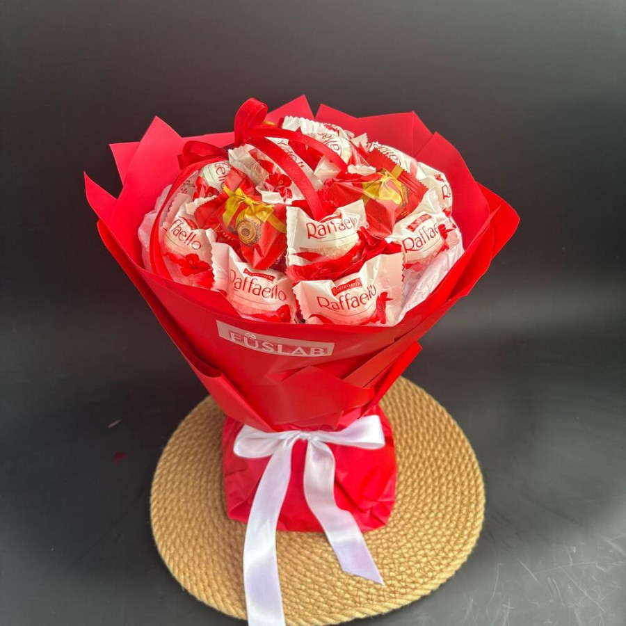 Конфеты Raffaello - 15 шт. Целлофан прозрачный - 1 шт. конфеты landrin - 3 шт. каркас технический с упаковкой - 1 шт.