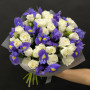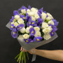 Букет из синих ириcов и белой кустовой розы в Белебее